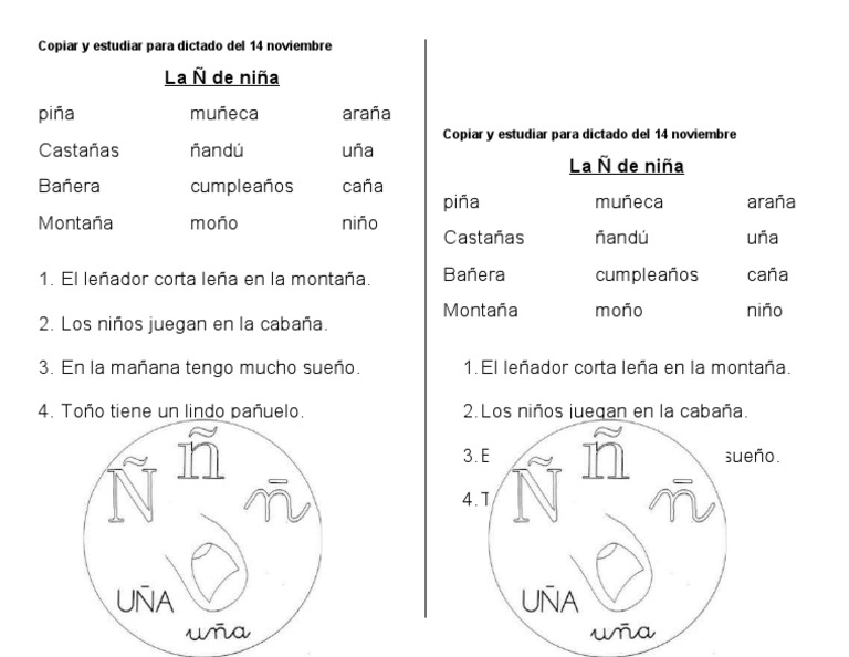 Letra Ñ Actividades - 1er Grado Espanol Palabras Con N : Aquí encontrara diferentes actividades de aprendizaje con las letras para niños de preescolar y palabras que inician con la letra ñ.